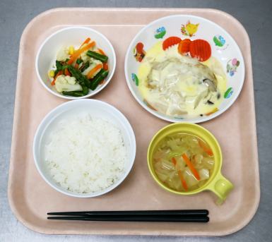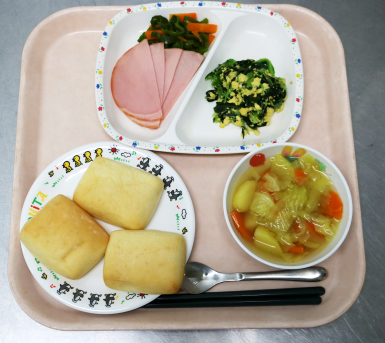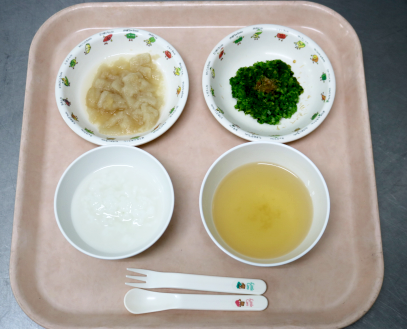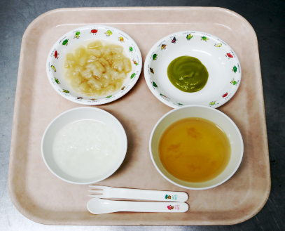 栄養科 給食入院している患者さんの給食を提供いたしております。乳児の場合は、粉ミルクや離乳食を提供しております。学童食 離乳食前期・中期・後期食事時間幼児食および学童食離乳食時間内容時間開始期前期中期後期7:00朝食10:00○○○○10:00おやつ15:00○○12:00昼食18:00○15:00おやつ※お子さんの成長・発達に応じて2回食、3回食も対応させていただいております。18:00夕食行事食入院中のお子様が楽しくお食事が出来るように季節の行事に合わせたメニューを提供させていただいております。月行事名メニュー1月正月おせち料理・お雑煮七草菜飯2月節分節分タマゴボーロ聖バレンタインデーチョコレートケーキ3月ひなまつりゼリー・ちらし寿司ホワイトデークッキー5月こどもの日たいやき7月七夕七夕そうめん土用の丑の日ひつまぶし9月十五夜さつま芋ご飯10月ハロウィンかぼちゃマフィン十三夜フルーツ・チキンビーンズ12月冬至かぼちゃ甘煮クリスマスイブクリスマスケーキクリスマスローストチキン大晦日年越しそうめん 栄養指導 食事療法が必要な方には管理栄養士による栄養指導を行なっております。栄養相談を行ないます。(ご希望の方は担当医にご相談ください。)栄養管理茨城県立こども病院では入院しているお子さん一人一人の栄養管理をNSTがサポートしています。NSTとは栄養サポートチーム(Nutrition Support Team)のことで、多職種の集団(チーム)により基本的医療のひとつである栄養管理を、症例個々や各疾患治療に応じて適切に実施することです。NSTメンバーは医師、看護師、管理栄養士、薬剤師、検査技師、事務員で、各専門知識を生かして栄養管理をします。